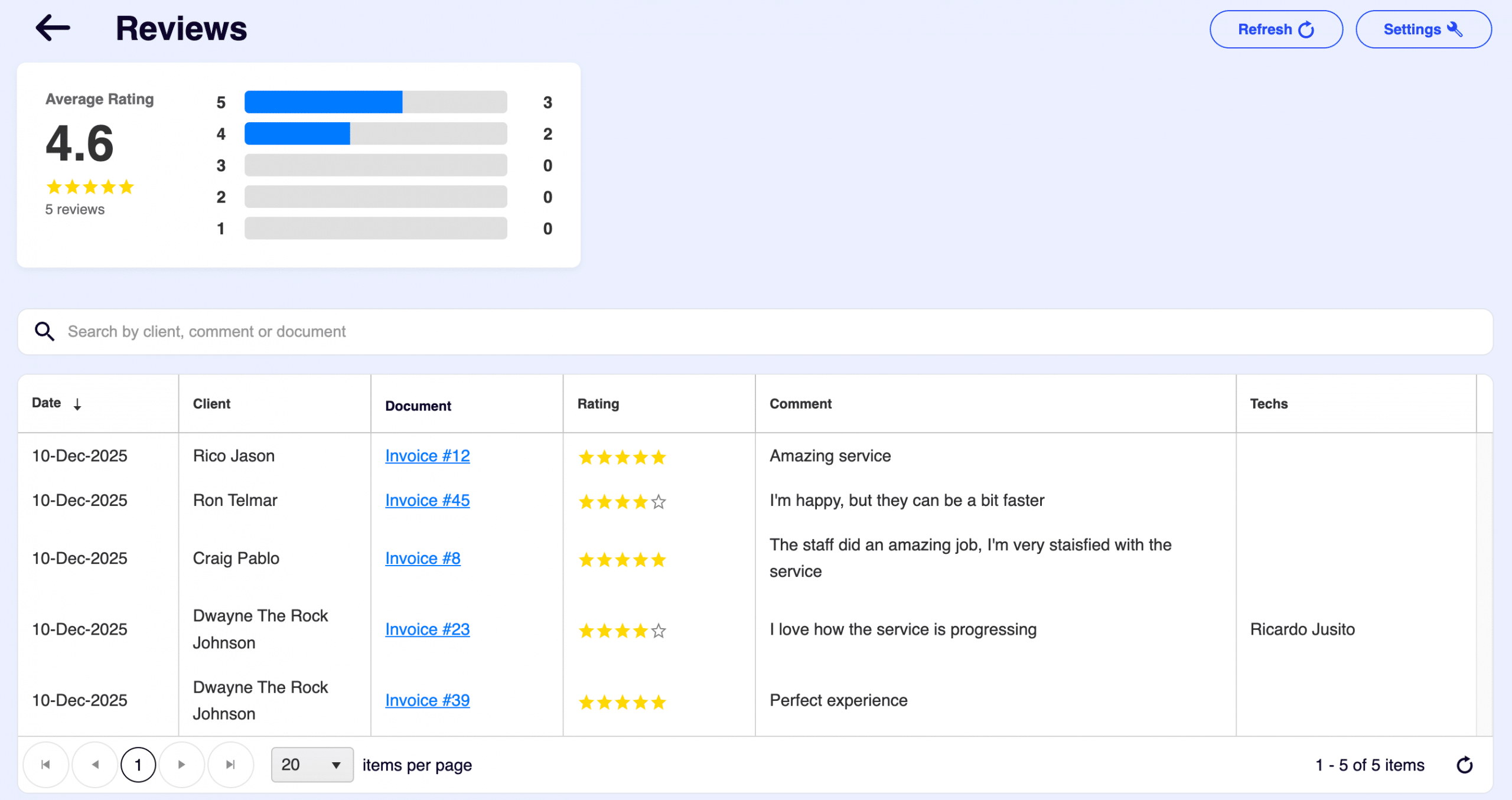 Your customers can now rate their experience right from the documents you already share with them. This gives you a clear picture of how much value your service truly brings and where you can keep getting better. Over time, those small improvements add up to stronger trust, better reviews, and a shop that keeps raising its own standard.