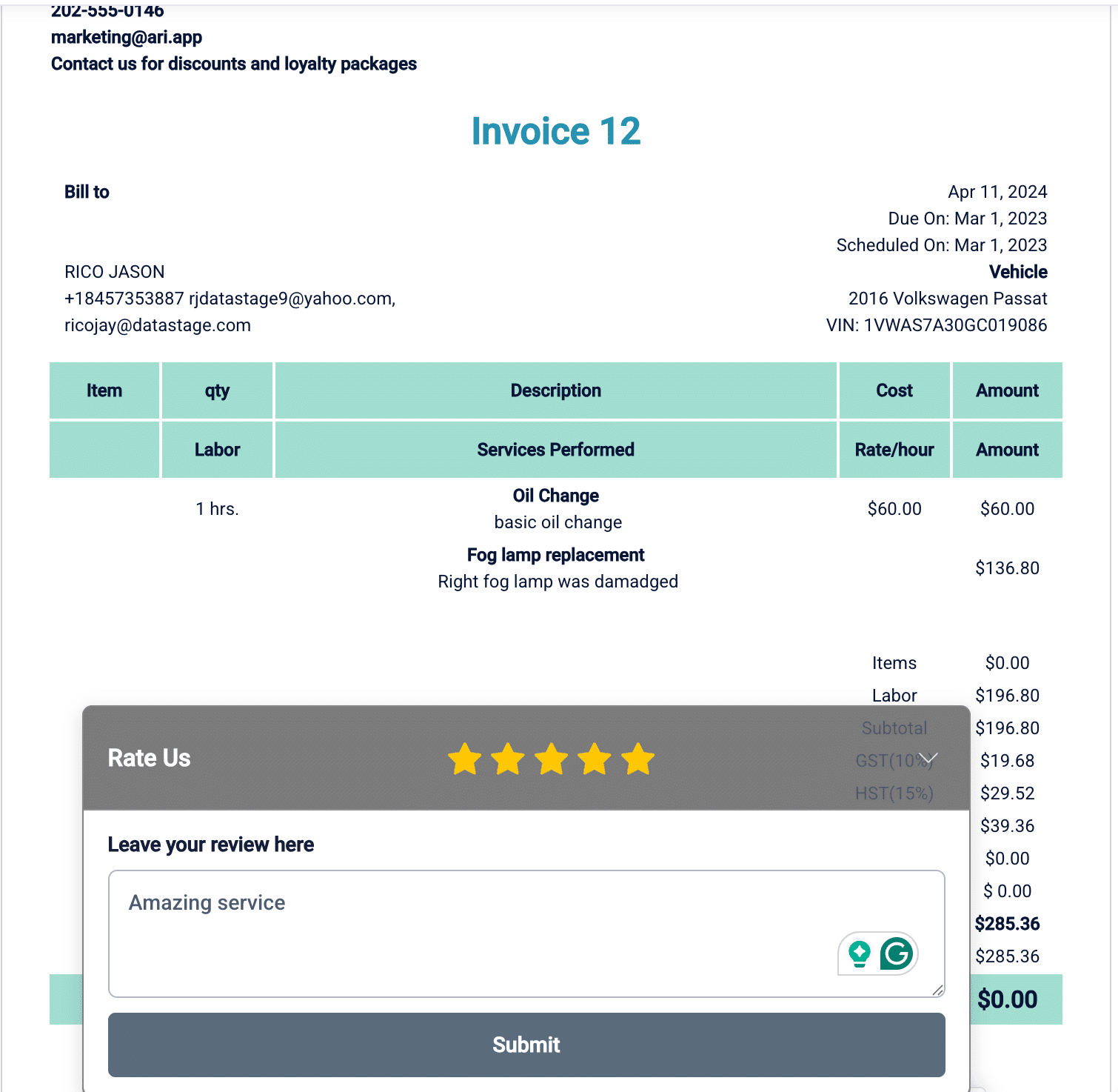 Our latest update comes with one of the most requested features to date – the ability for clients to rate your shop using ARI (Auto Repair Software). That way, the quality of your services can reach more people, and you can attract new customers. You can activate the reviews feature and share it on all of the documents you are sending.